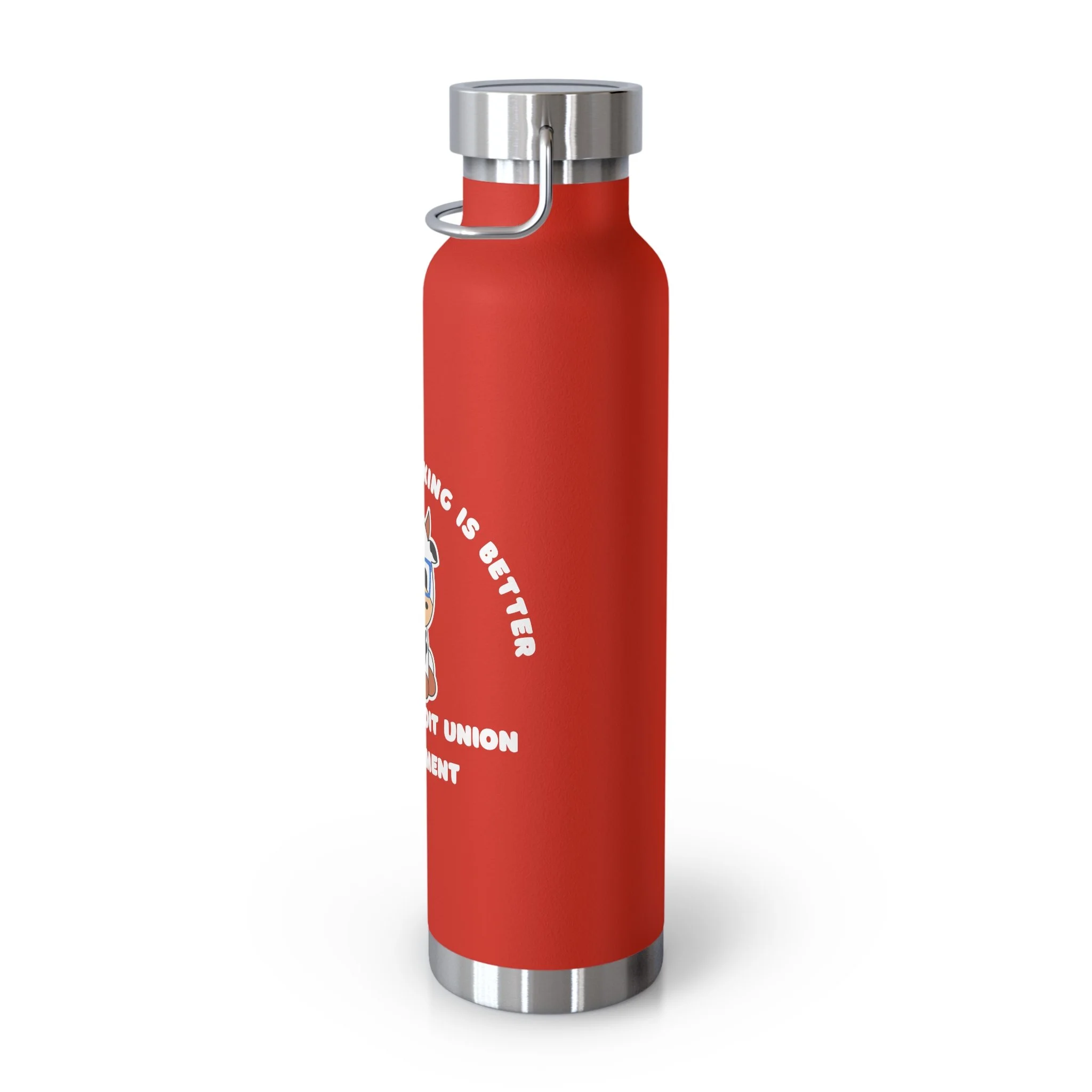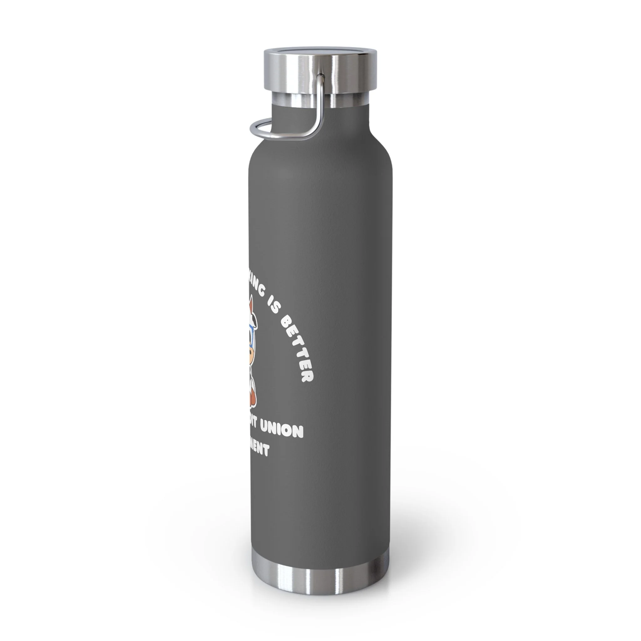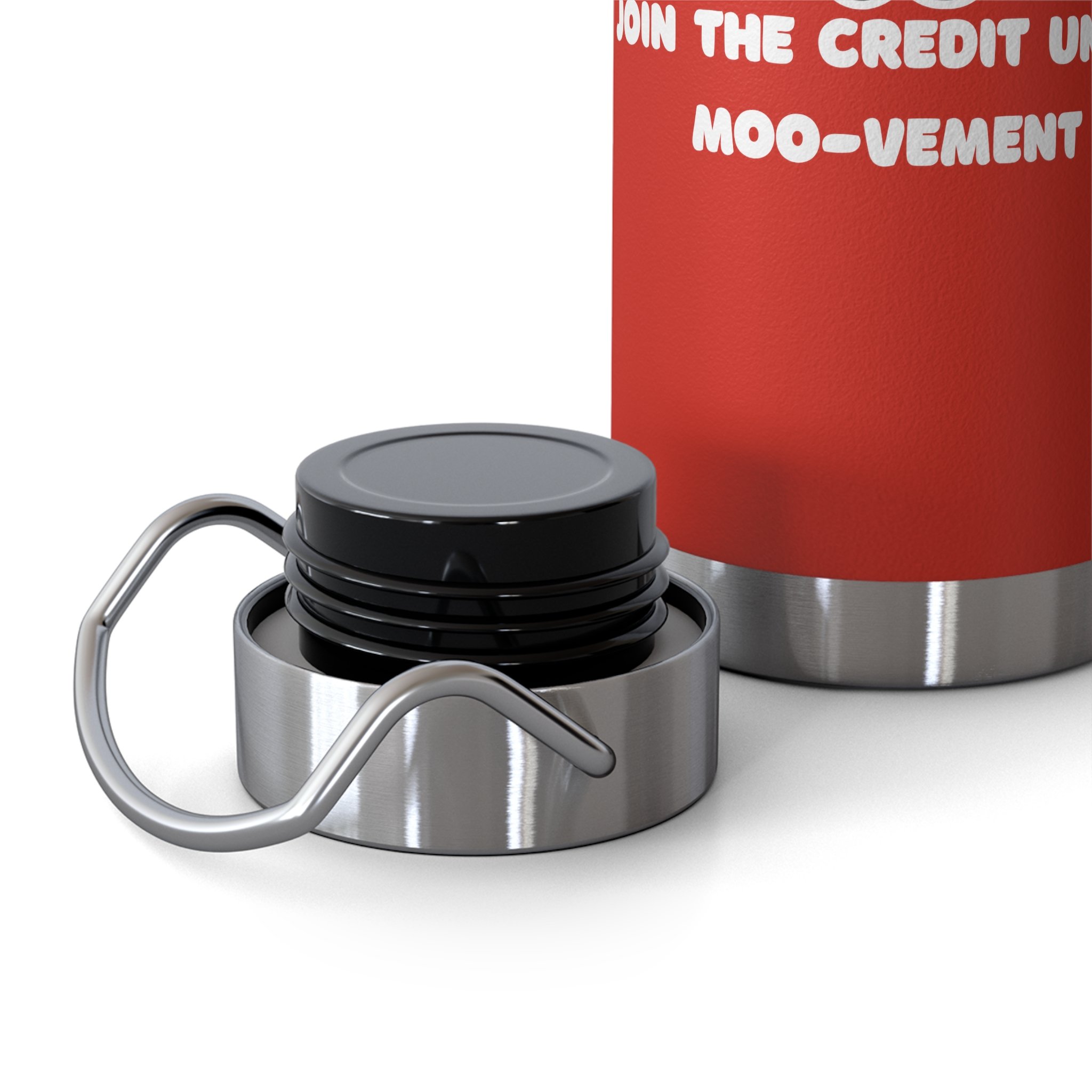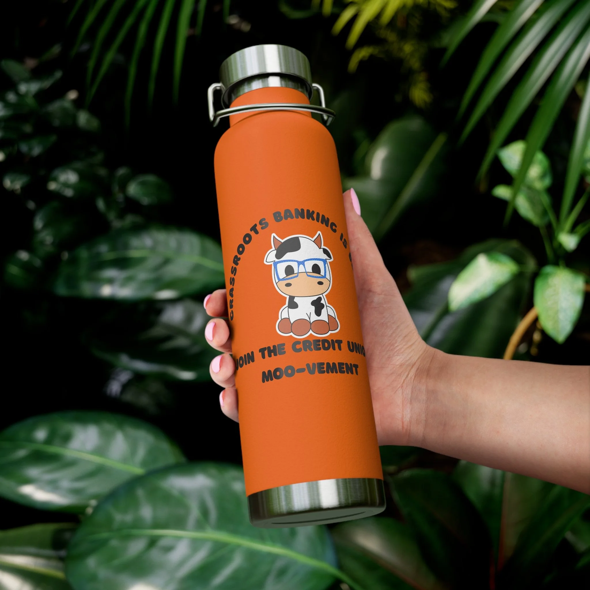 22oz Copper Vacuum Insulated Bottle — 'Join the Credit Union Moo-vement' Cute Cow Design, Stainless Steel Water Bottle