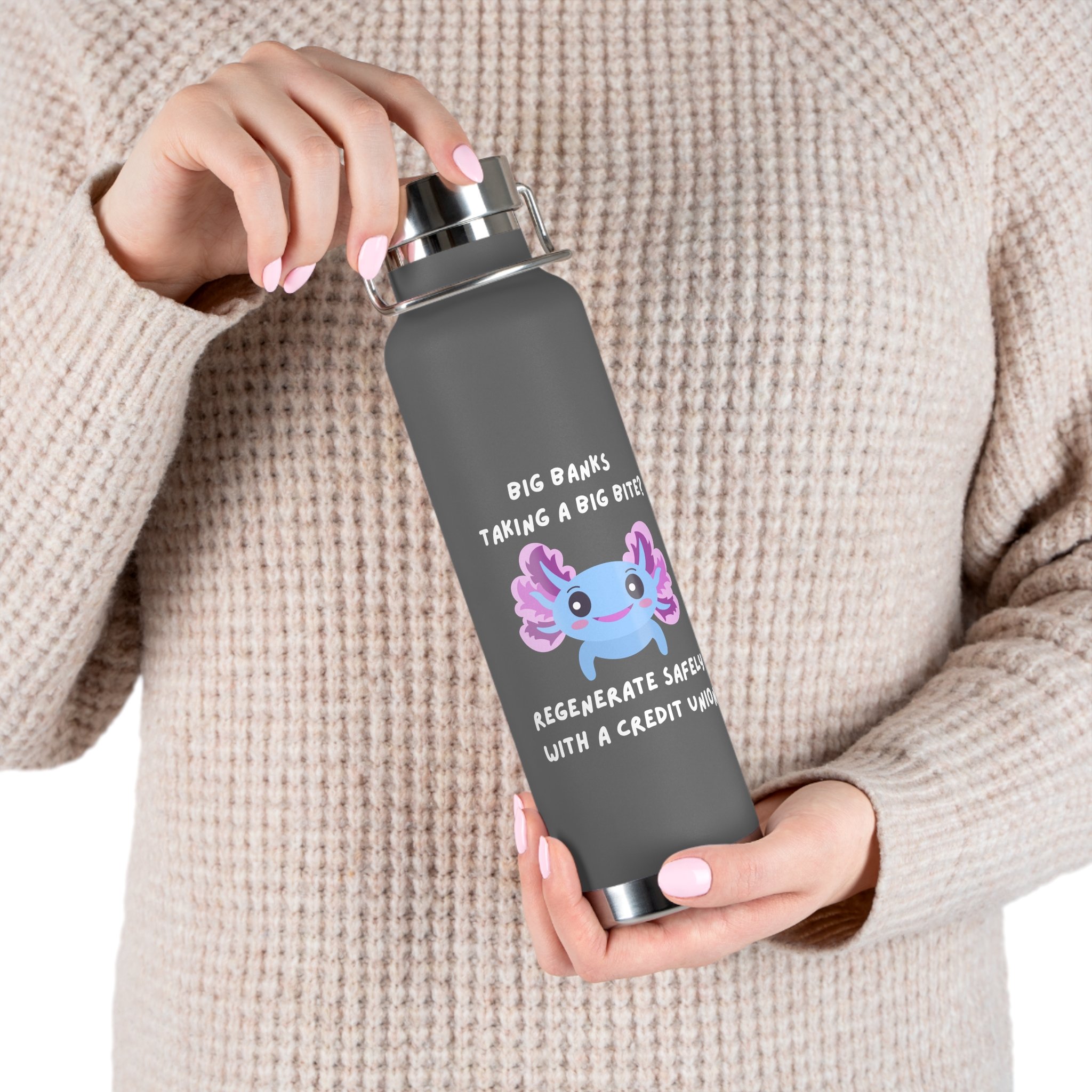 Credit Union Axolotl 22oz Copper Vacuum Insulated Bottle — Cute Design Stainless Steel Water Bottle