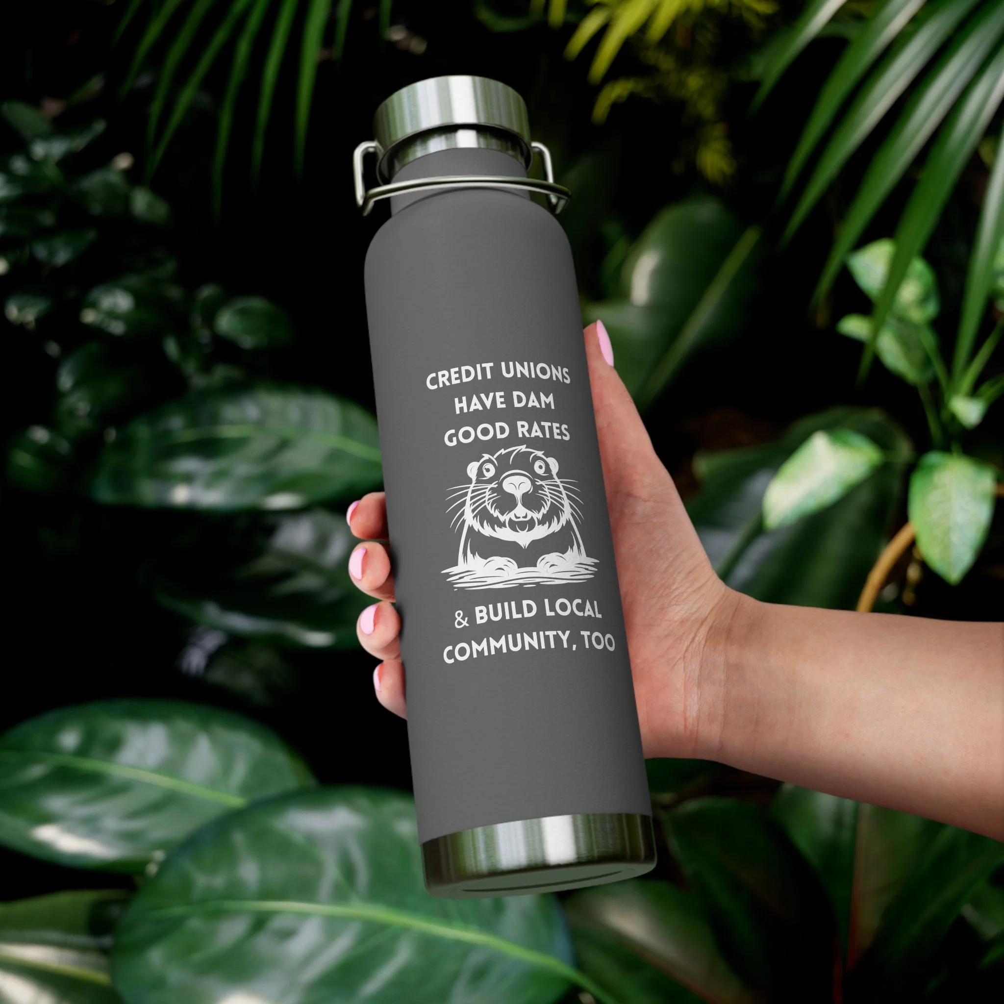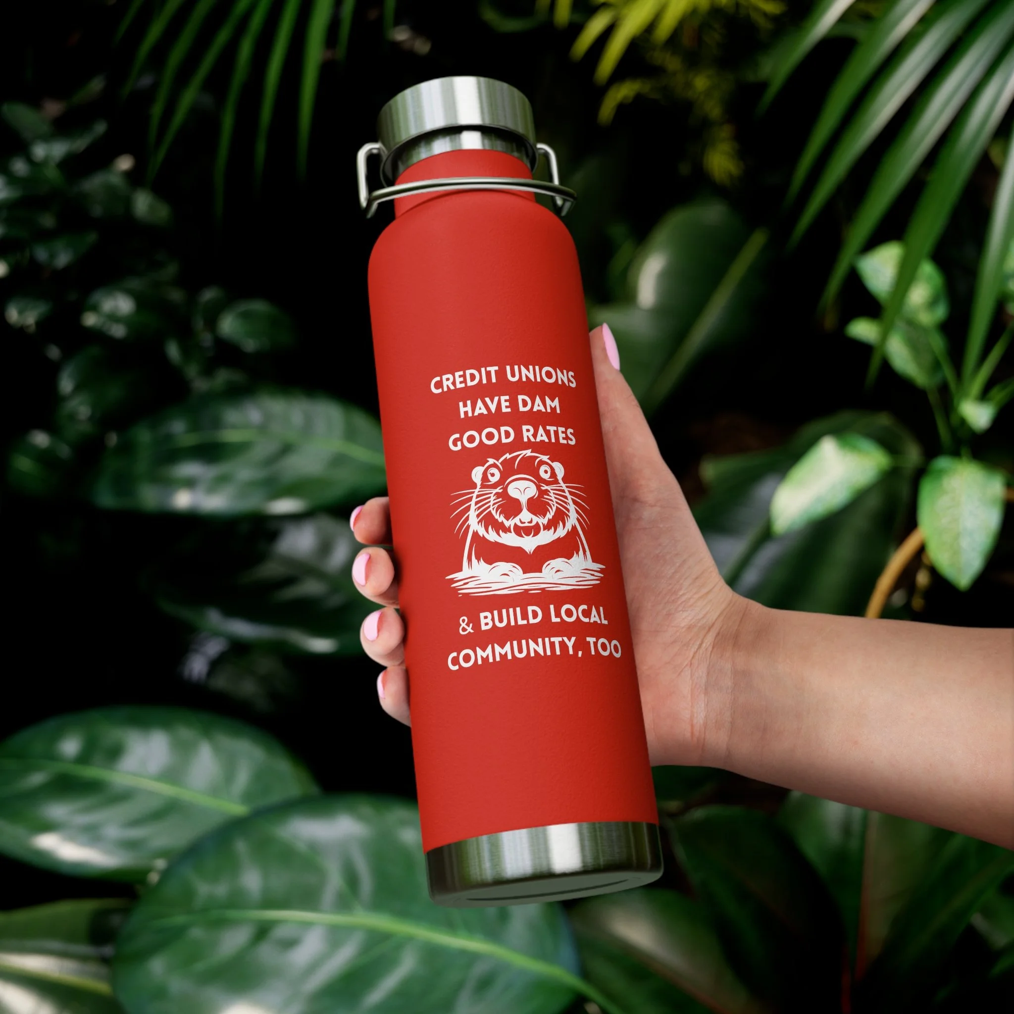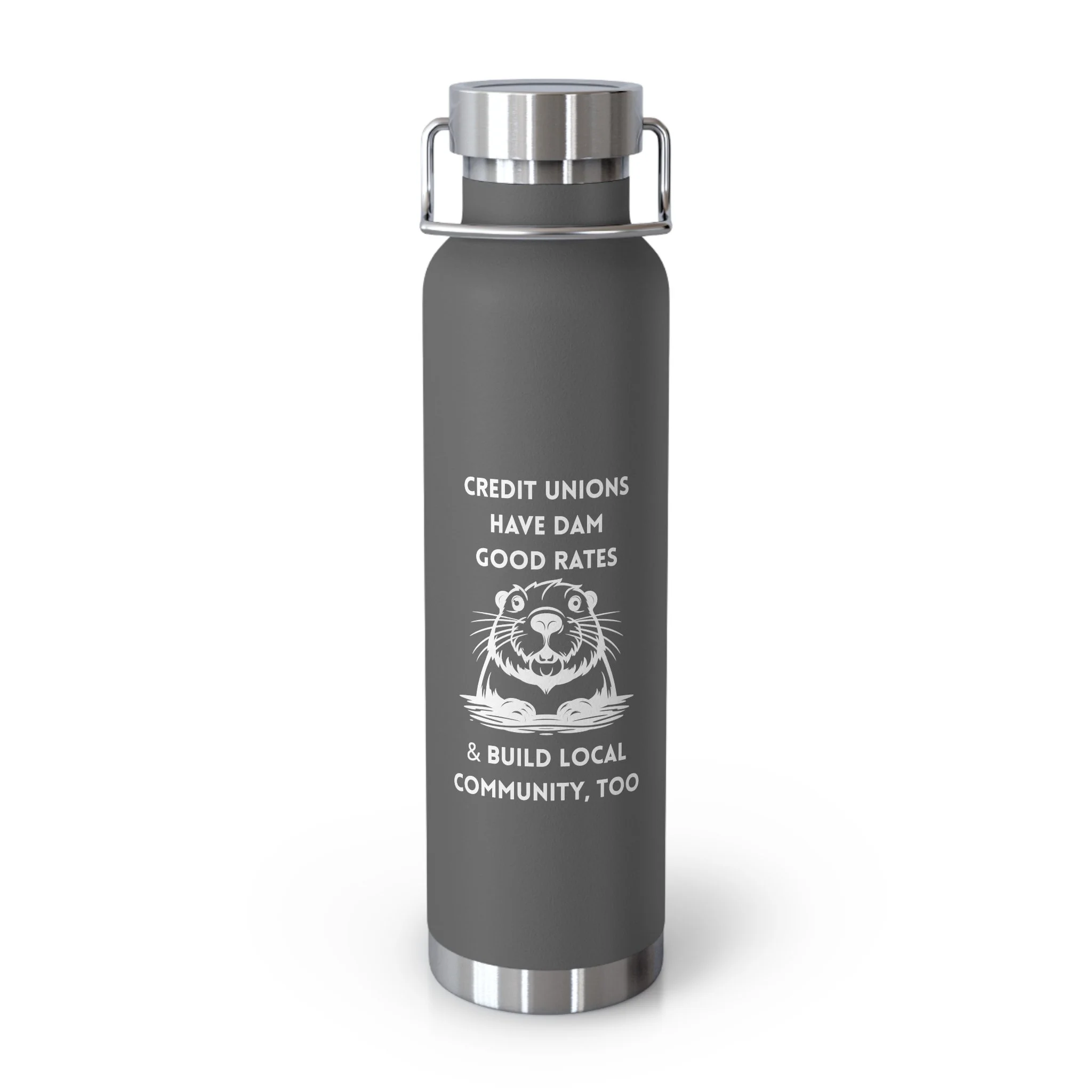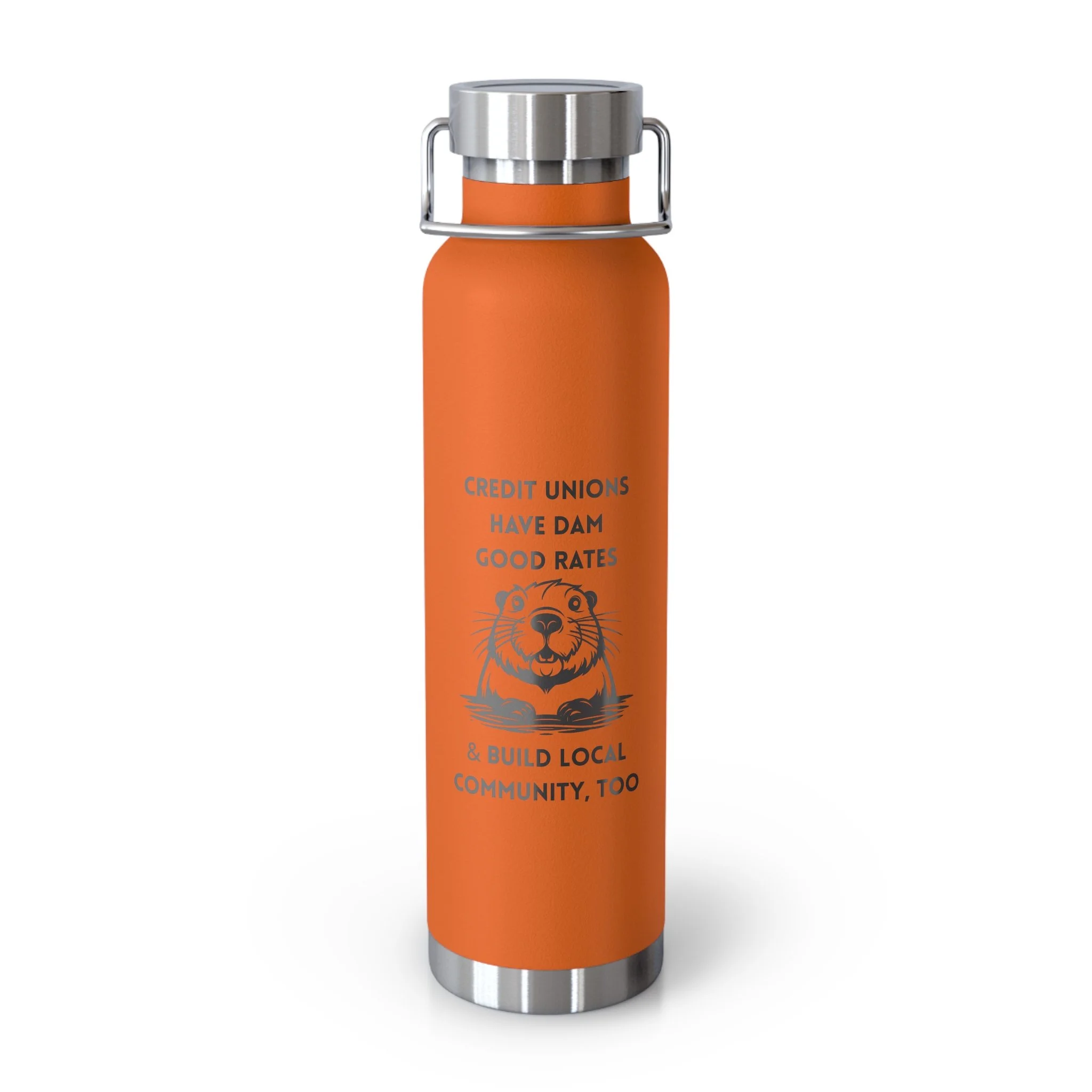 Credit Union Beaver 22oz Copper Vacuum Insulated Bottle — Cute Design Stainless Steel Water Bottle