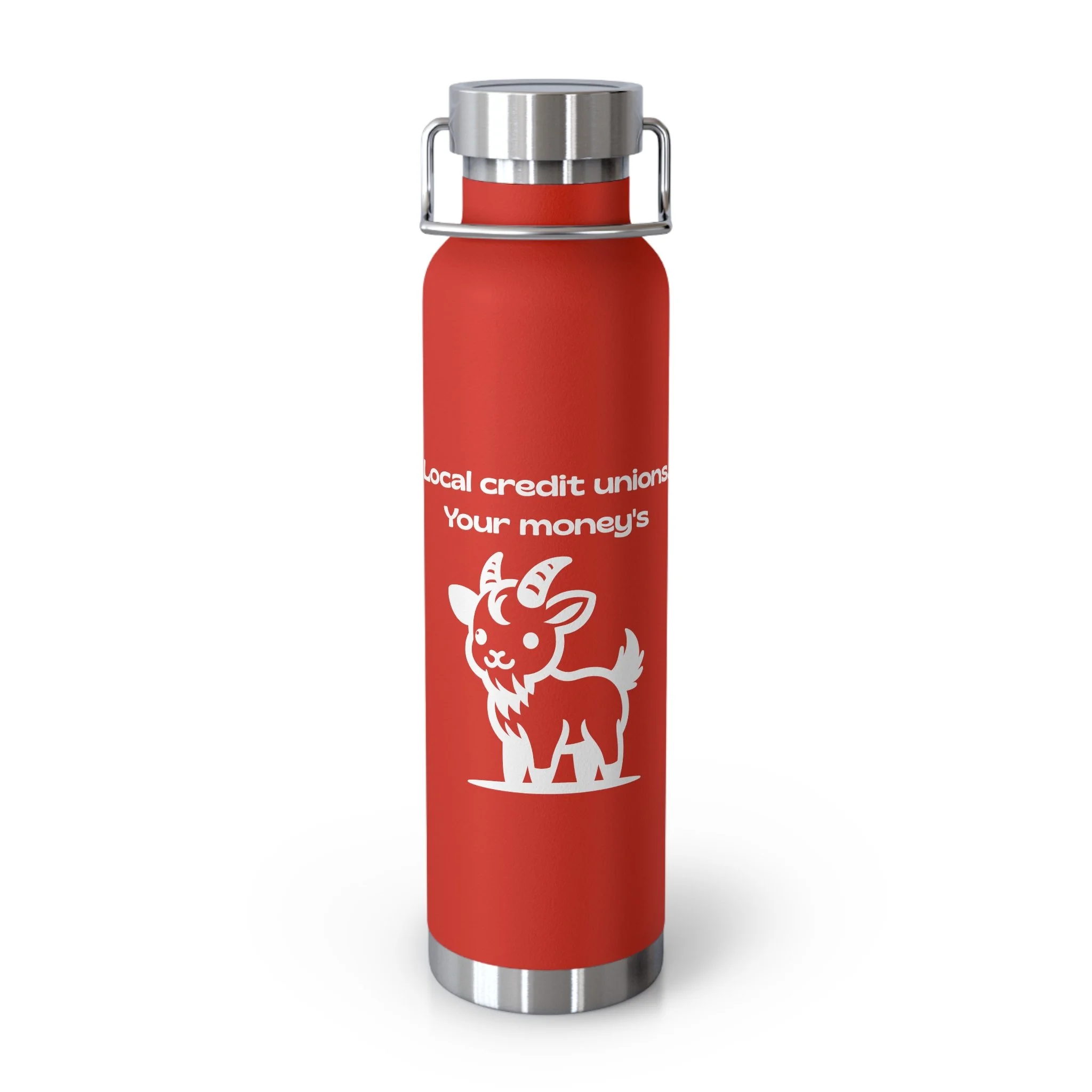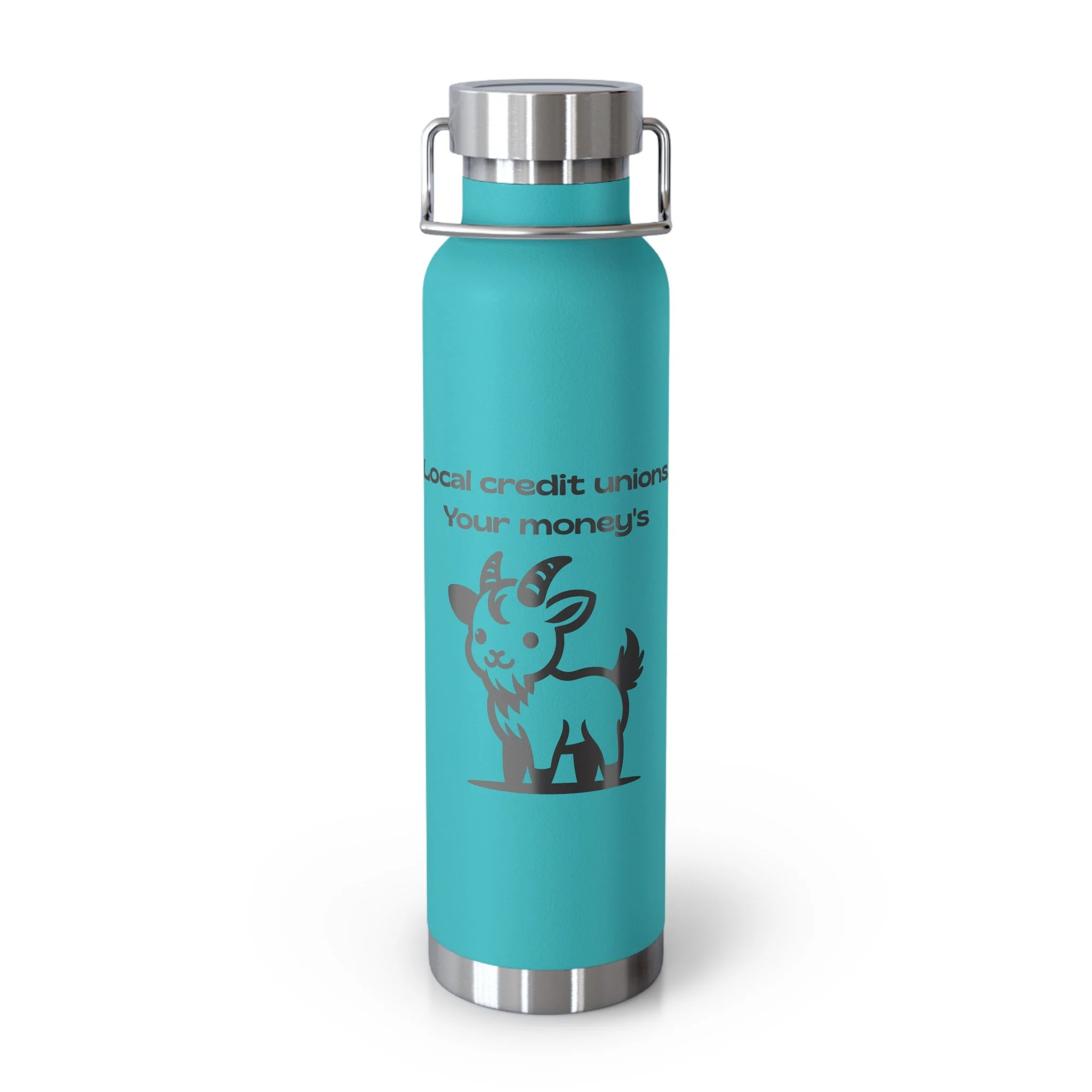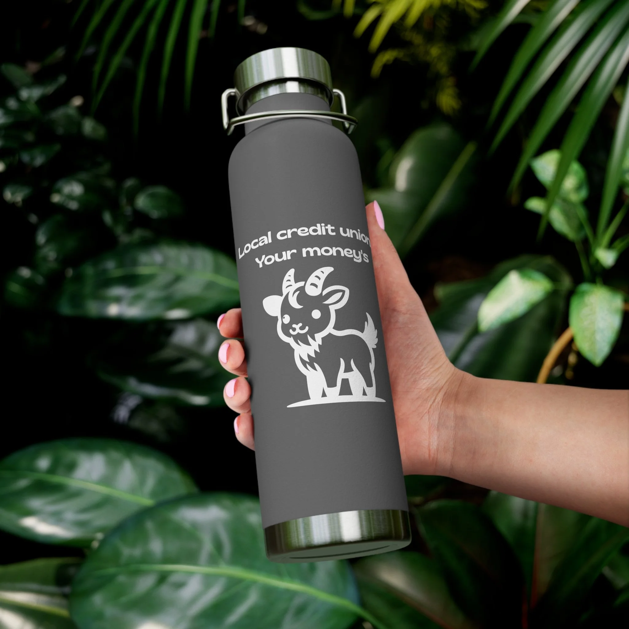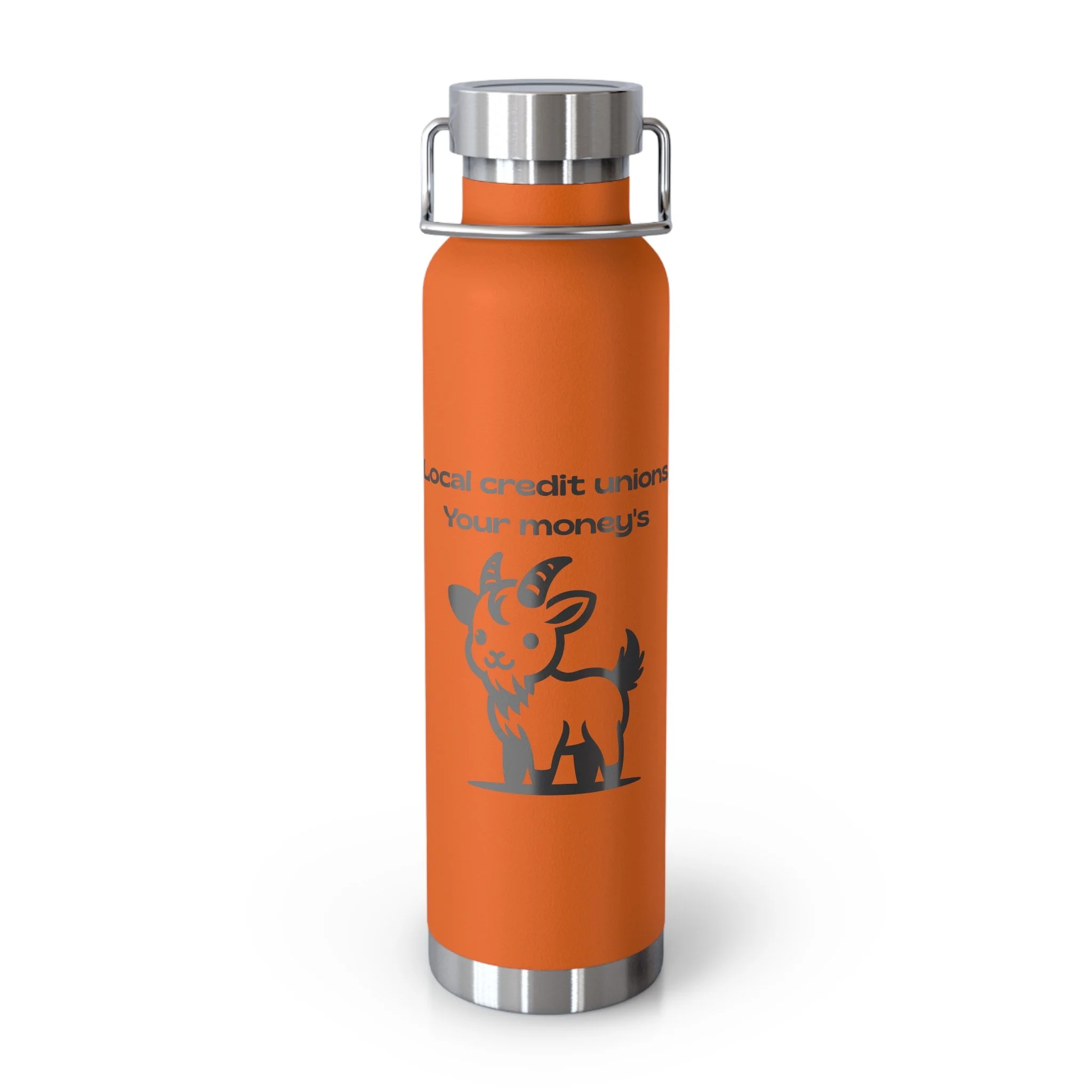 Credit Union Goat 22oz Copper Vacuum Insulated Bottle — Cute Design Stainless Steel Water Bottle
