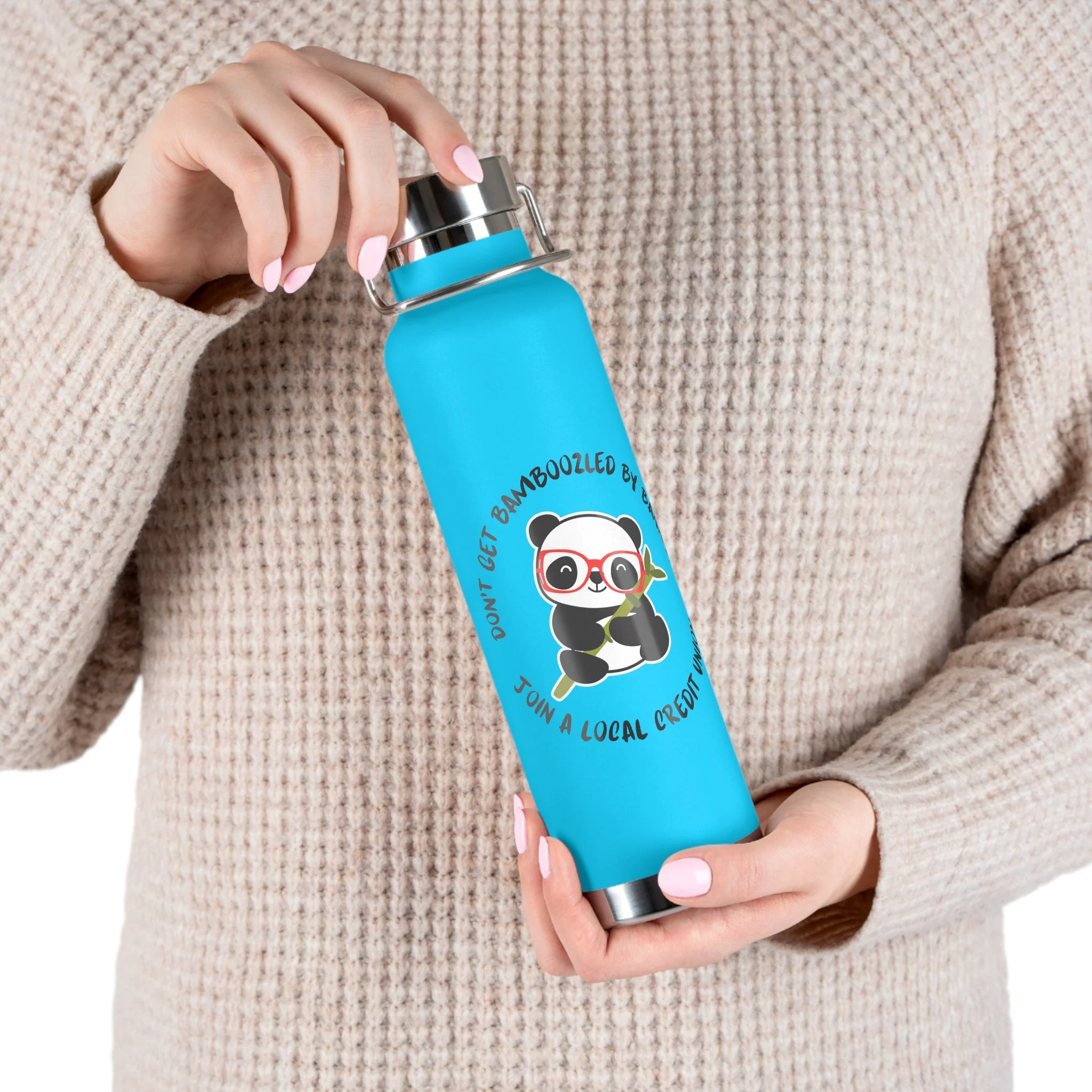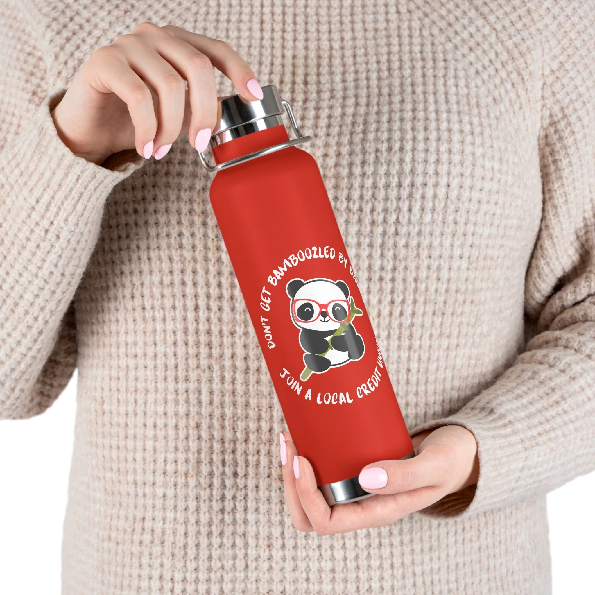 Credit Union Panda 22oz Copper Vacuum Insulated Bottle — Cute Design Stainless Steel Water Bottle