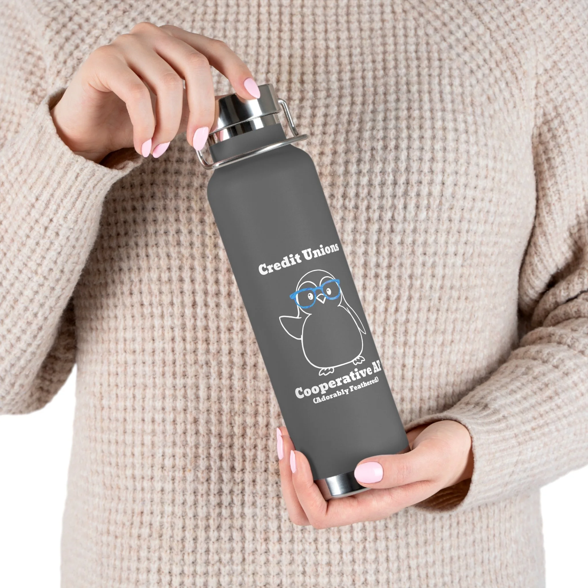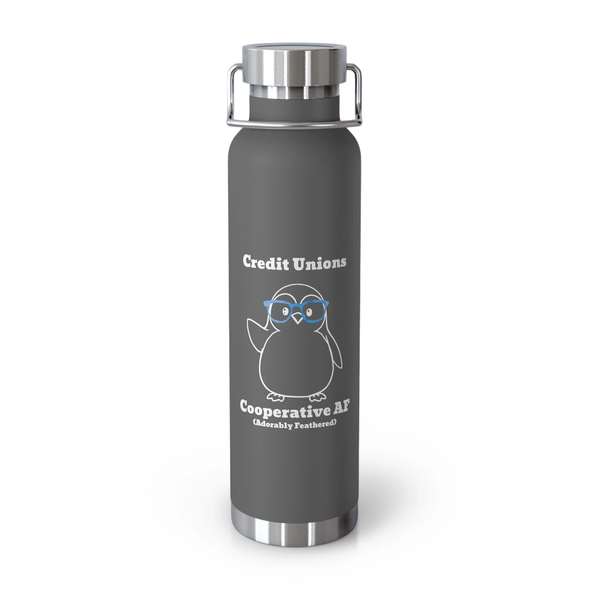 Credit Union Penguin 22oz Copper Vacuum Insulated Bottle — Cute Design Stainless Steel Water Bottle