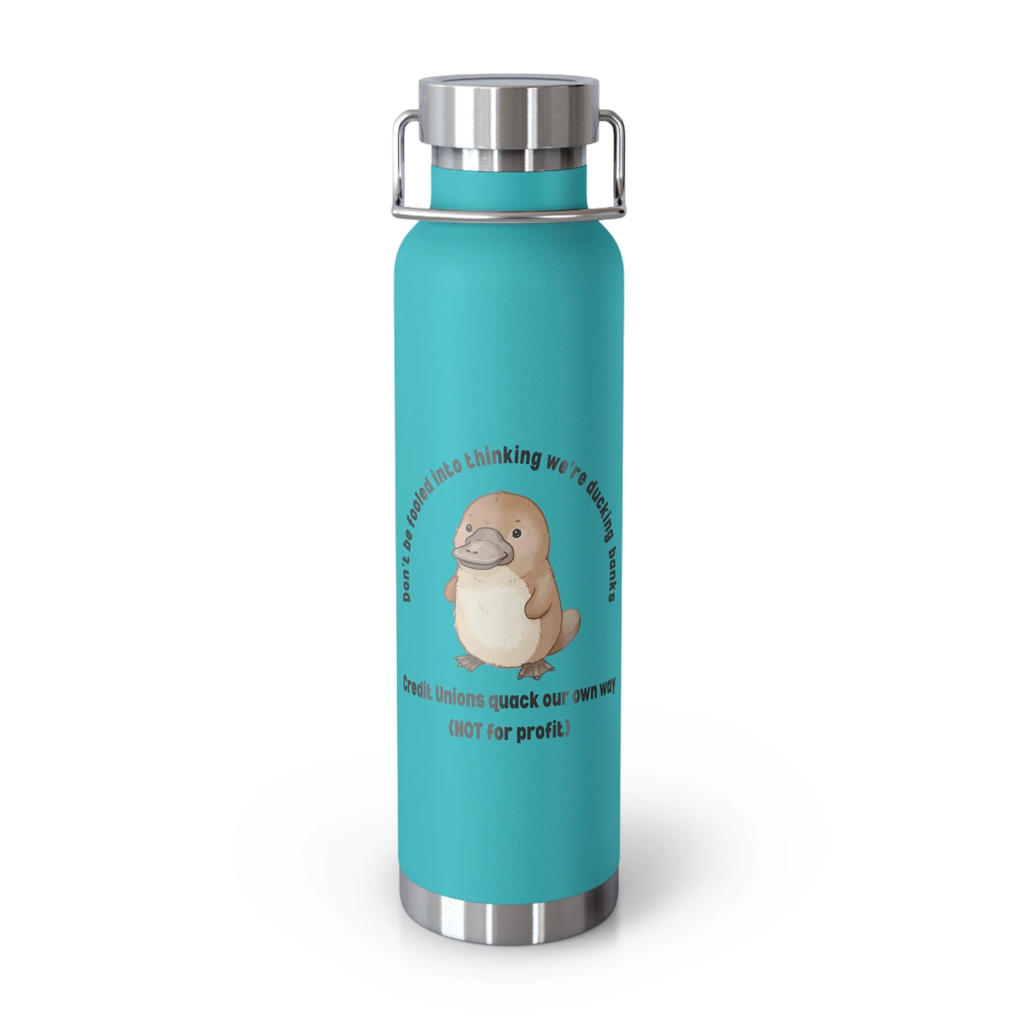Credit Union Platypus 22oz Copper Vacuum Insulated Bottle — Cute Design Stainless Steel Water Bottle